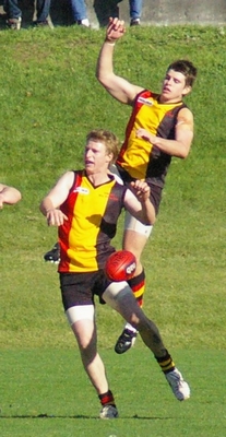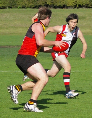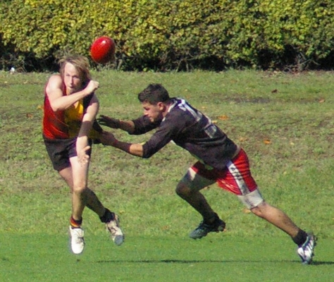 Marson was named best on ground, here passing to Whittle who created a clever