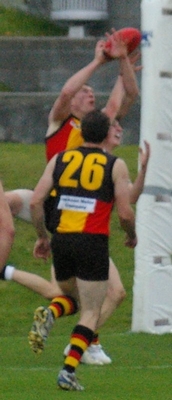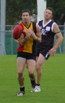 Hanson looks for a handball from Fitzpatrick who was named best for Uni
