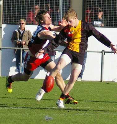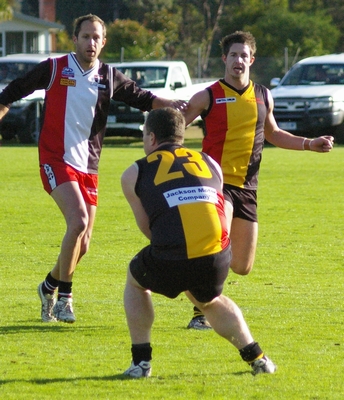 Saunders, McCarthy and Fenton getting numbers to the ball and Fenton crashing