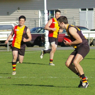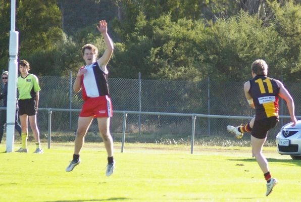 Gale force winds straightened a neighbouring flag and made conditions very difficult for the reserve's game and the first half of the main event. Reserves are improving and the seniors gained 4 valuable points to slip into the top four.