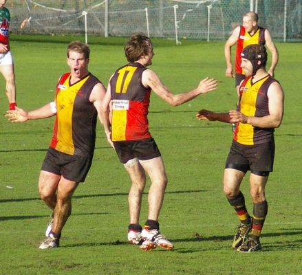 Reeves celebrates his second of three and Hill is congratulated after accepting