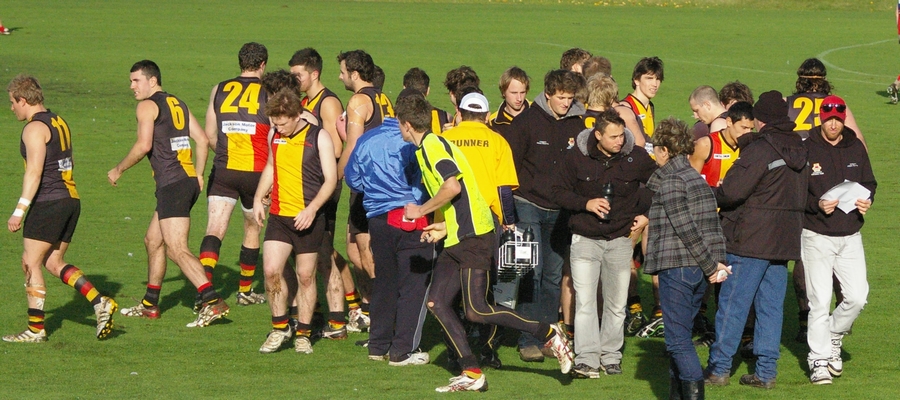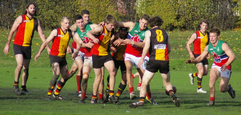 After heavy rainfall during the week the ground was wet and the ball slippery. The Reserves only went down by two points but a double win over OHA the last time they met turned into a double loss today. With the bye next week and senior players such as McEvoy and Burgess to return, the 2012 season could still deliver positive outcomes