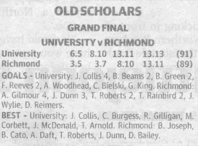 Anderson, Clark and Palmer played in the Reserves Grand Final